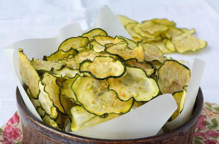 Zucchini chips are a creative way to make use of an abundance of zucchini for a tasty, healthy snack. Baking zucchini into crispy chips takes a few simple steps and some oven time. Why hit the vending machine when these oven baked zucchini chips are low in fat and calories, and they're best described with one could someone tell me how many ounces would make a serving? Press onto the zucchini pieces with a paper towel to squeeze out excess water. Seriously, you have no idea how small that 1 1b of zucchini is going to get.